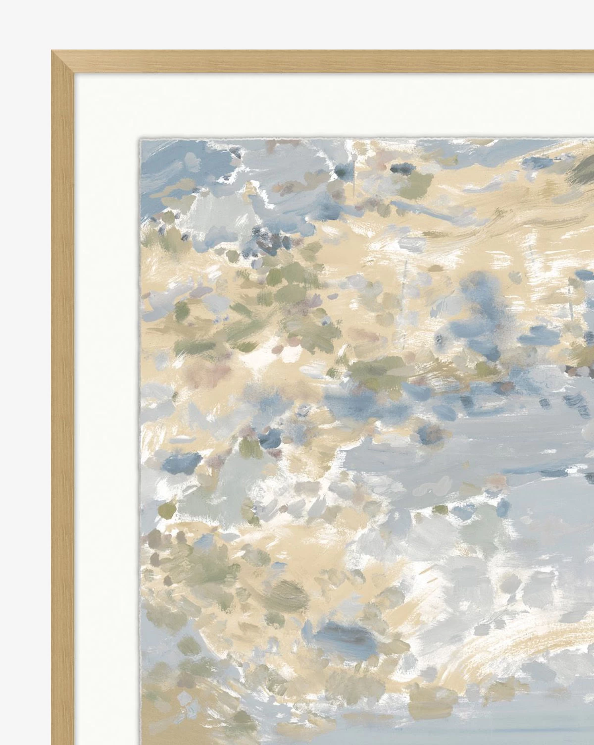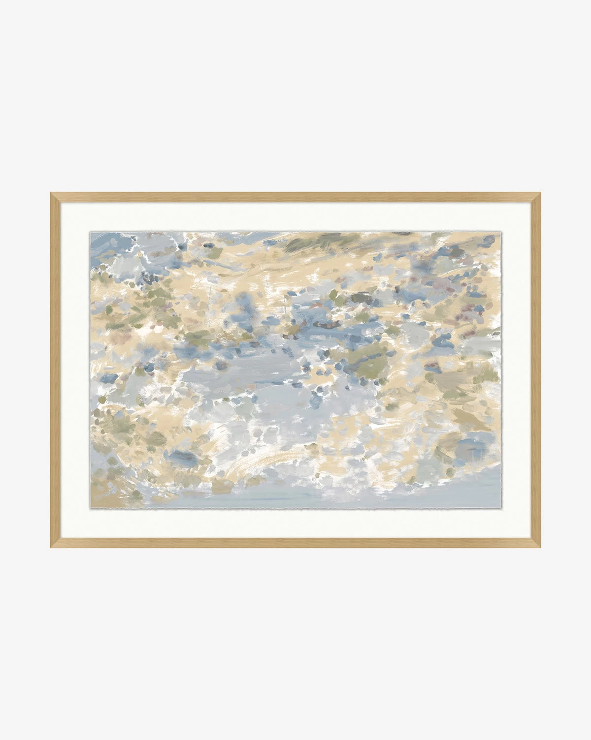 With impressionist qualities, Pond with Lily Pads is a playful representation of simple plants on still water. Its pastel colors and abstract composition give the piece a sense of calming movement. Framed in natural woodgrain, this museum-quality piece brings elegant simplicity to your space. Â