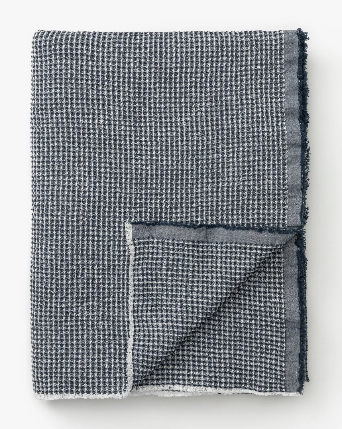 With a classic waffle weave, the Rebecca Throw is expertly made with cotton for lasting softness. Bringing texture and warmth, the throwâs deep navy color lends interest to textile layering and styling in any room in your home.