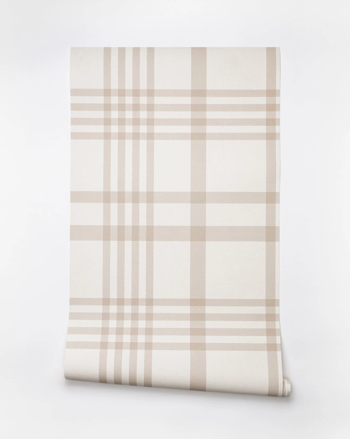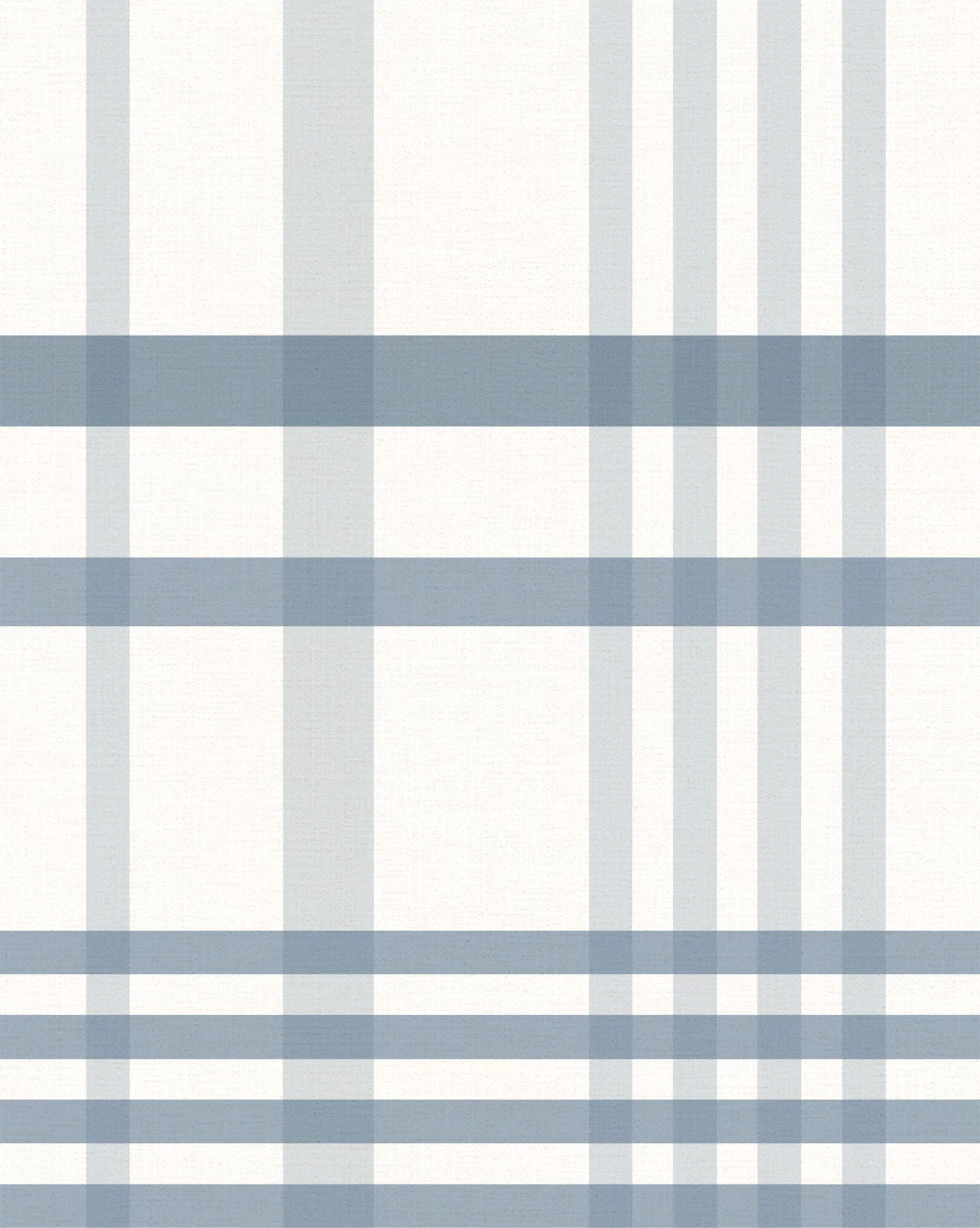 In a classic plaid style, the Rigby Plaid Wallpaper brings an airy, clean quality to this traditional pattern. Both of its colorways are simple and neutral, allowing it to grow with the room as tastes and preferences change. The pattern adds dimensional depth to the space with its varied shades of blue or taupe and crossed lines, bringing a timeless feel to childrenâs bedrooms.