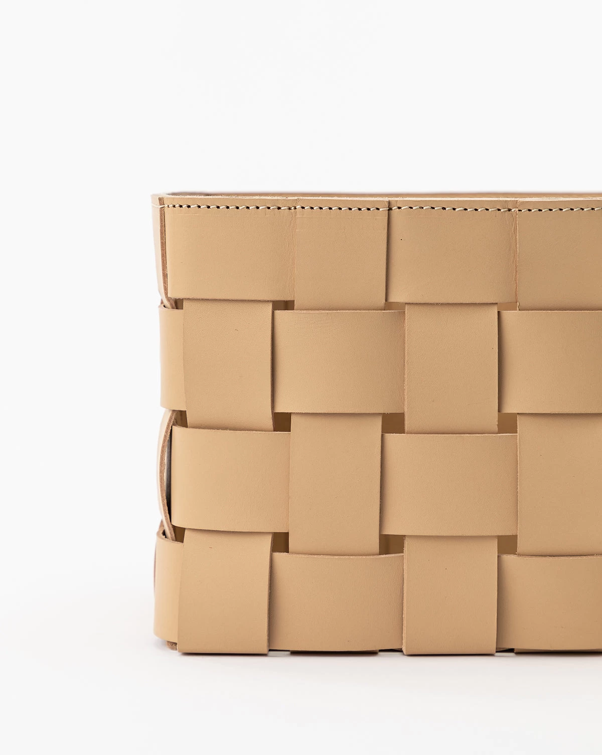 Made with high-quality leather in a nude hue, the Rupert Leather Bin is a timeless home office essential. Whether used on a desk or shelf, the woven leather bin elevates your organization and styling, lending its subtle yet sophisticated quality to your space.