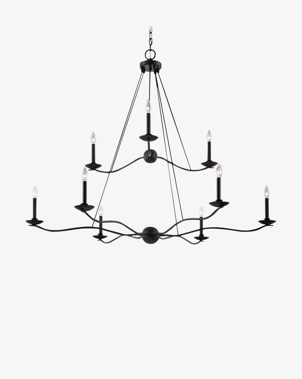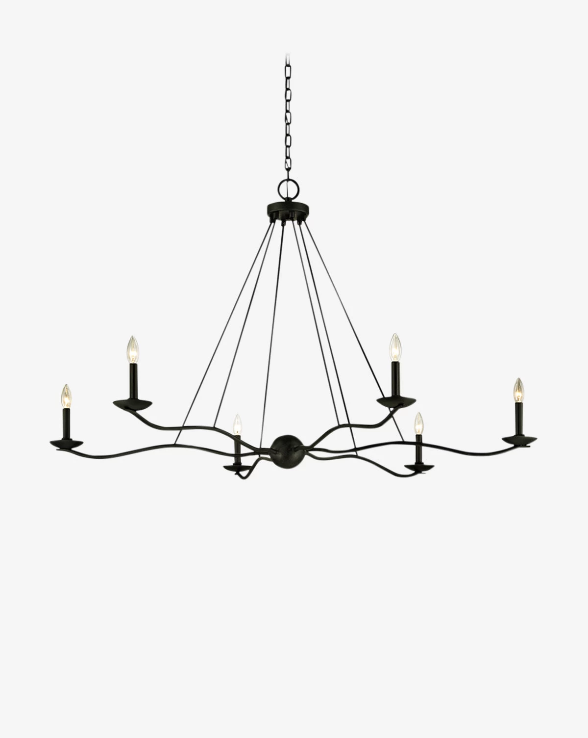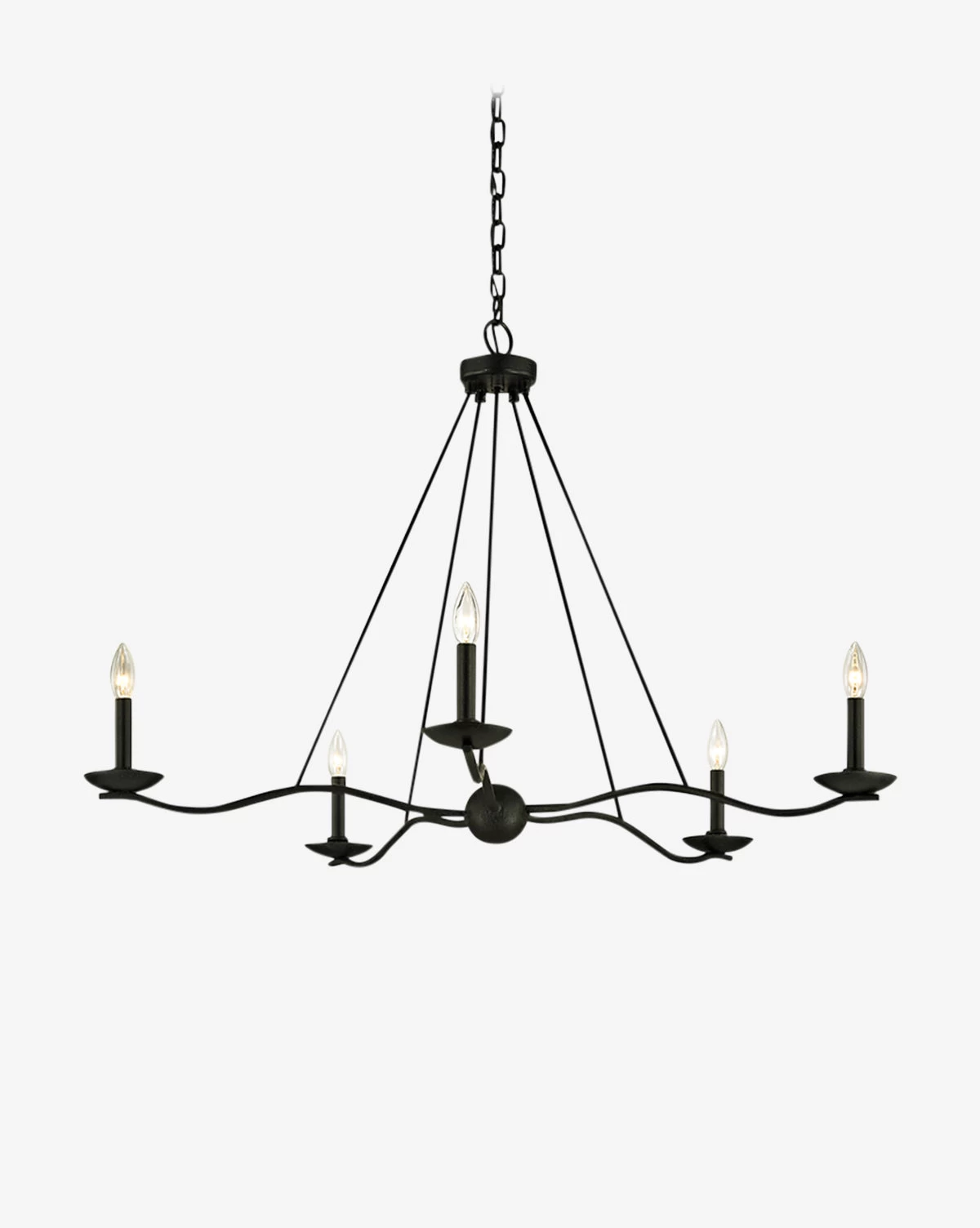 Crafted from forged iron with a classic silhouette, the Sawyer Chandelierâs versatile design blends seamlessly with designs from traditional to modern. Producing plenty of light, this fixture looks great over your dining table or styled in your entryway for a bold statement.