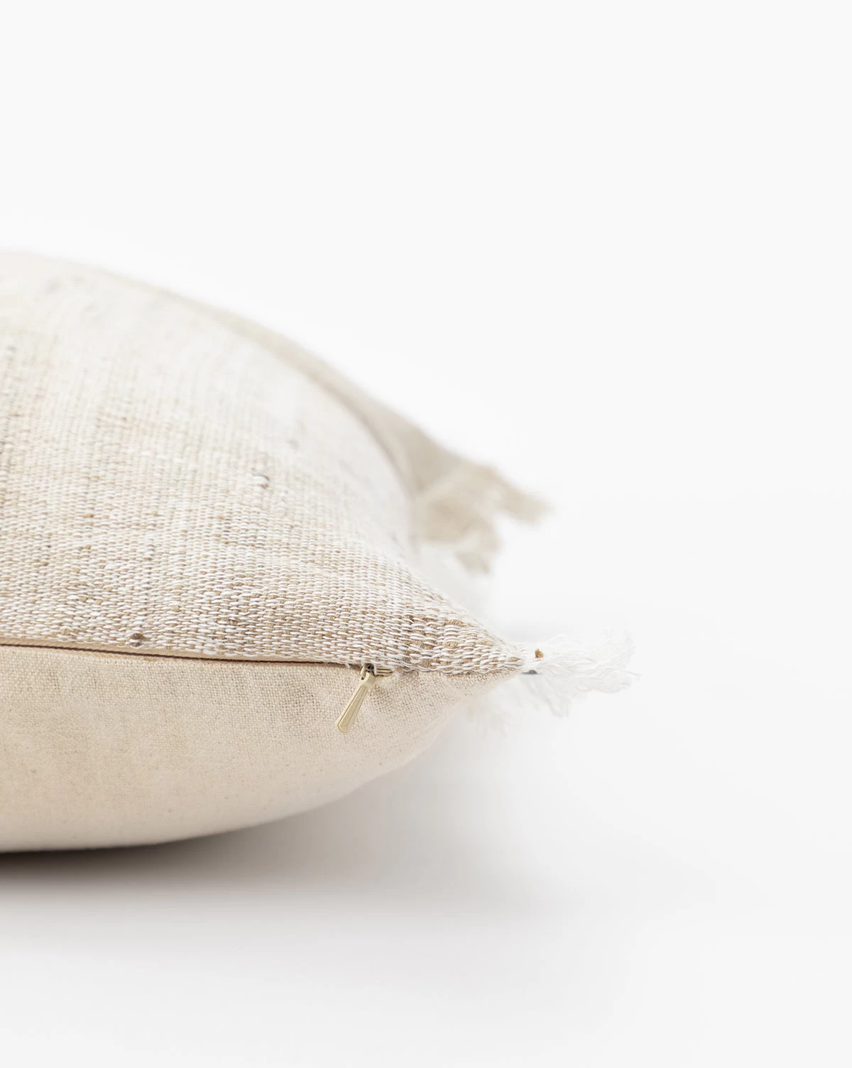 With a neutral palette, the Suzie Pillow Cover is highly textural in its pattern. The beautiful silk and linen material has natural detail in the fabric, complementing the tan block stripe that is offset in the pillow cover pattern. Complete with fringed edges, this lumbar pillow adds simple dimension to pillow vignettes. Â