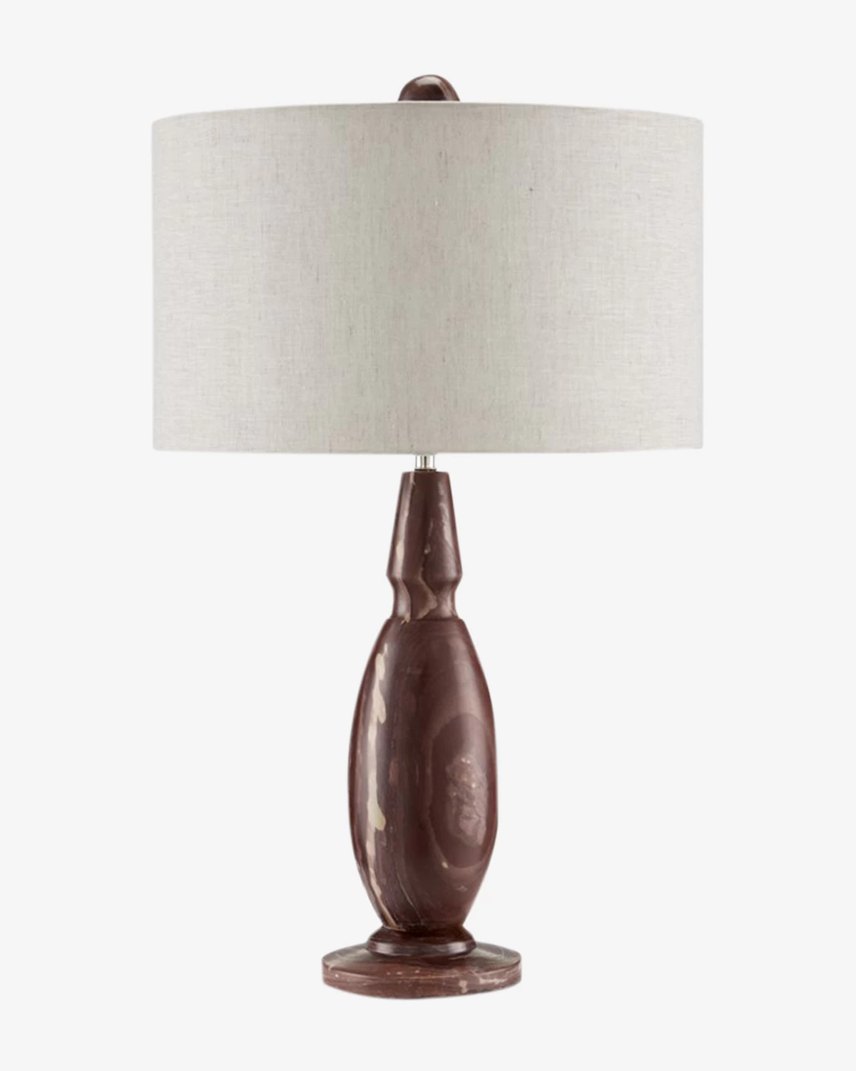 Refined and sculptural, the Temptress Table Lamp is crafted from marble in a rich hue. In a sleek form, the table lamp complements the natural linen drum shade and its marble finial, elevating your decor with its masterfully mixed materials.