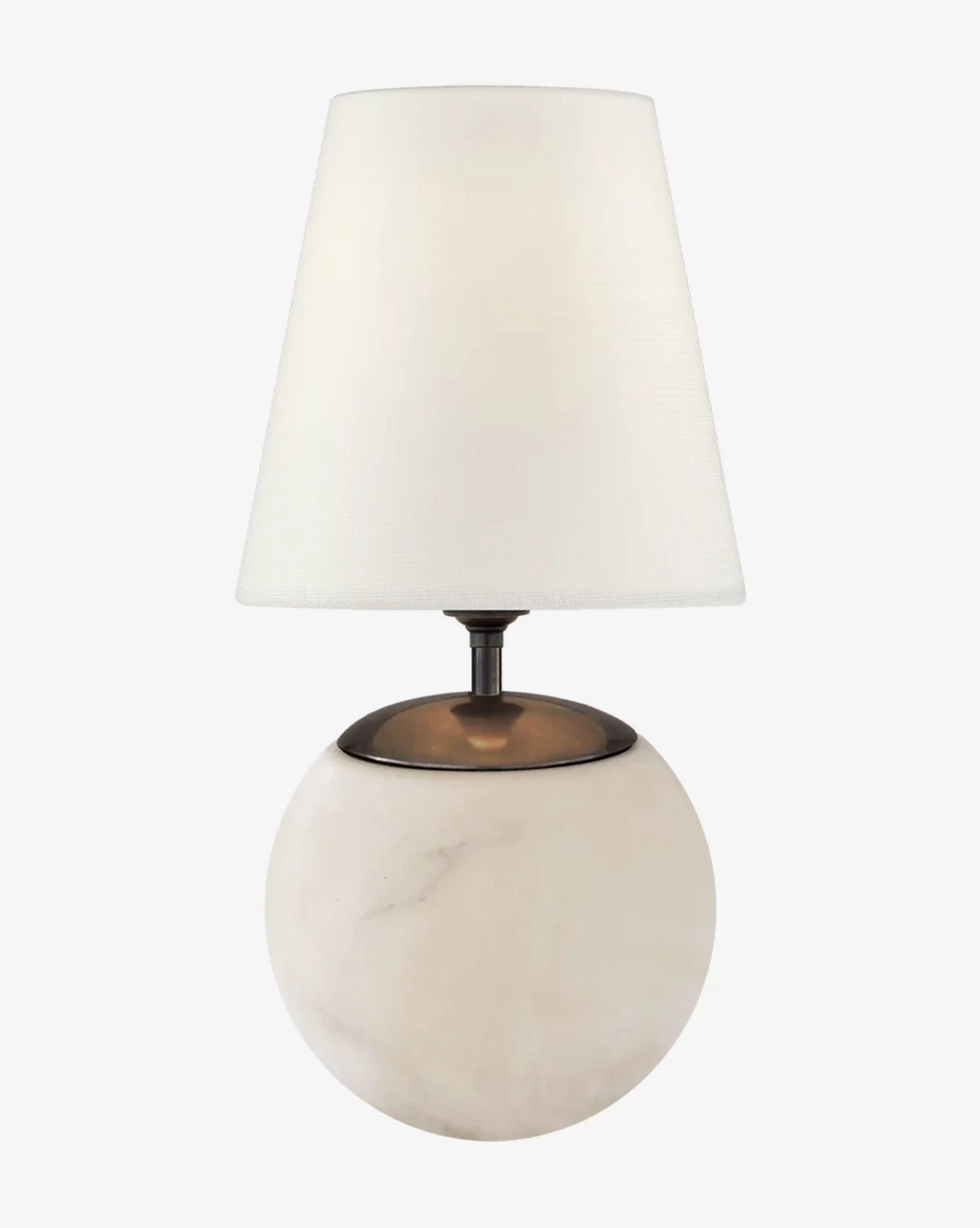 From the circular base to the tapered shade, our Terri Round Accent Lamp exudes sophistication with ease. With a choice of either a refined alabaster stone base, or a more glamorous crystal, this lamp not only brightens up the corners of your room, but adds unique dimension while doing so. Whether itâs styled as part of your entryway vignette, or lending depth on a side table, its versatile form blends seamlessly in both modern and traditional spaces.