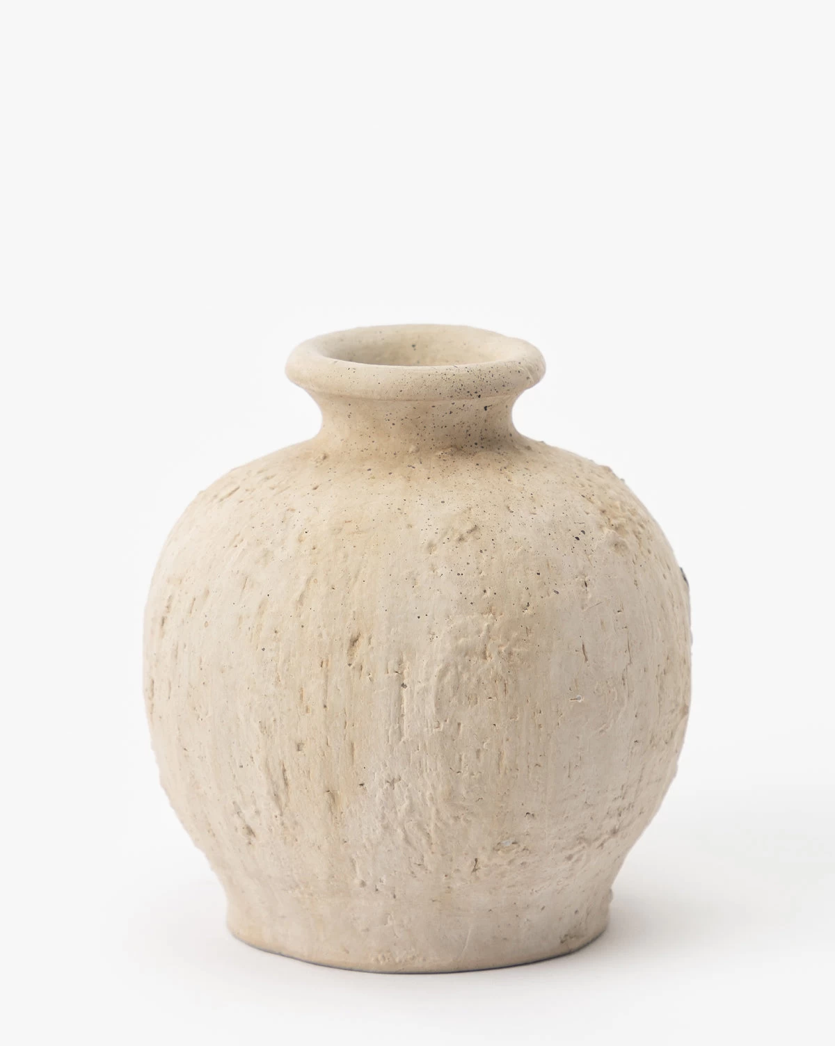 The Thalia Bud Vases have an antique and rustic feel that highlights their craftsmanship and materials. These vases are handmade with terracotta clay, bringing texture and neutral earthy tones to your built-ins or coffee table vignettes.