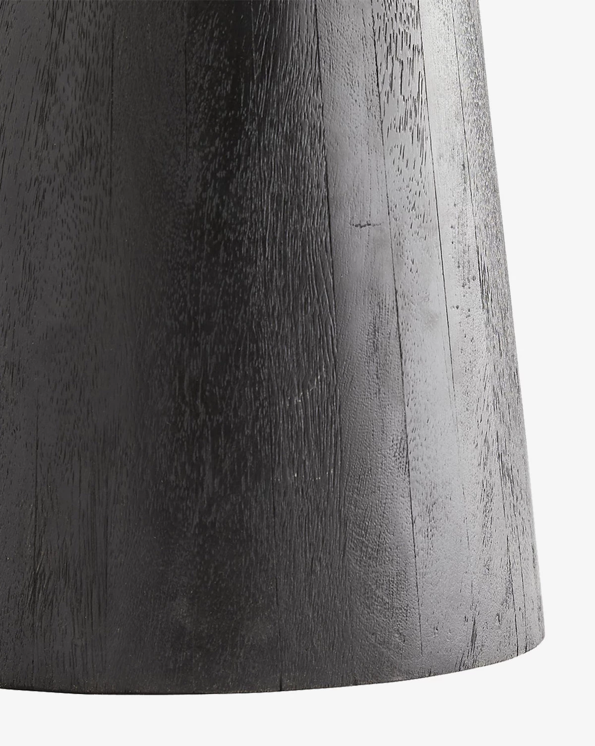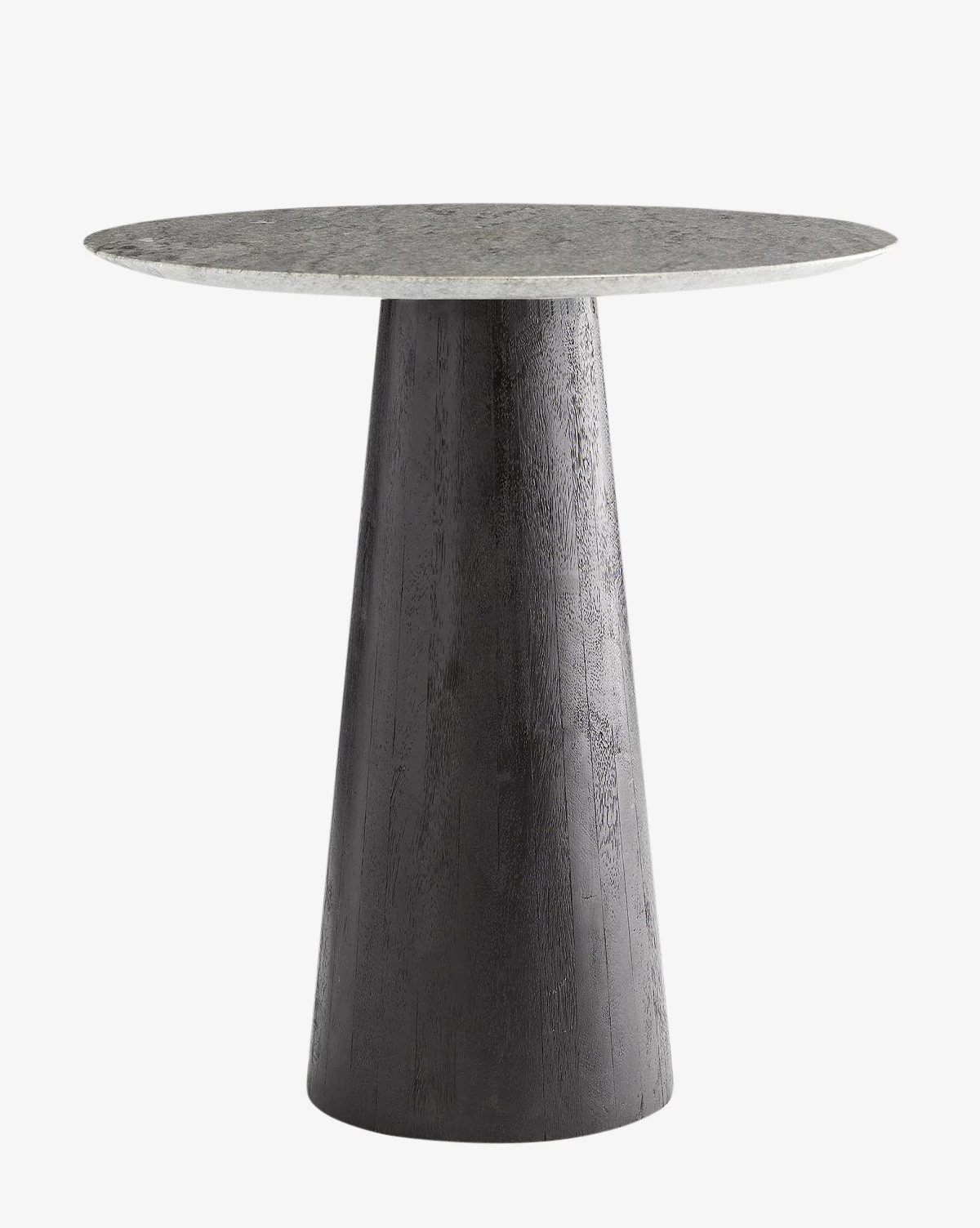 With a traditional pedestal design, the Theodore Side Table gets a modern update with its shapely form and tapered wood base. A gray, solid marble top complements its deep hued base, highlighting its natural knots and grains, while bringing movement to the design.