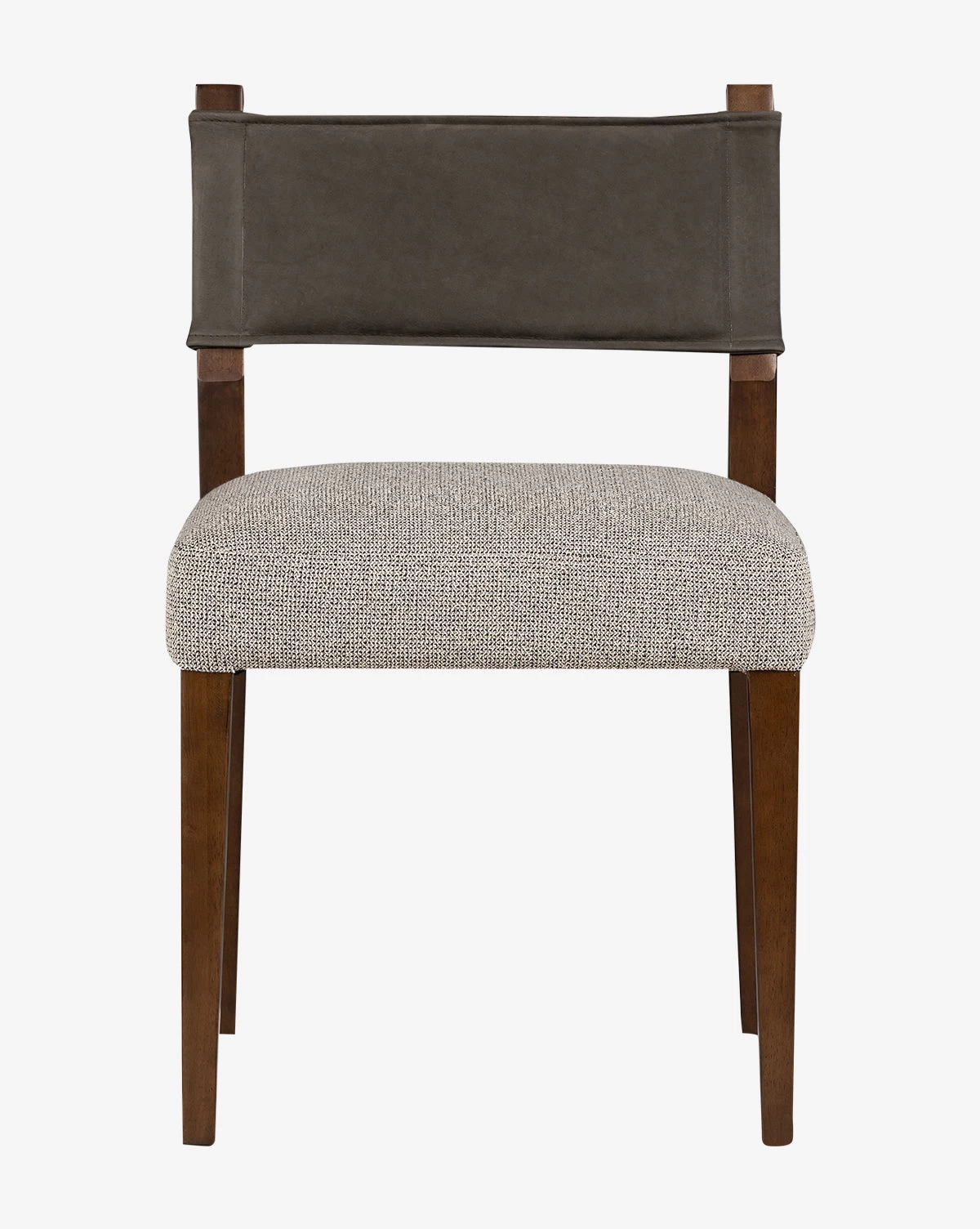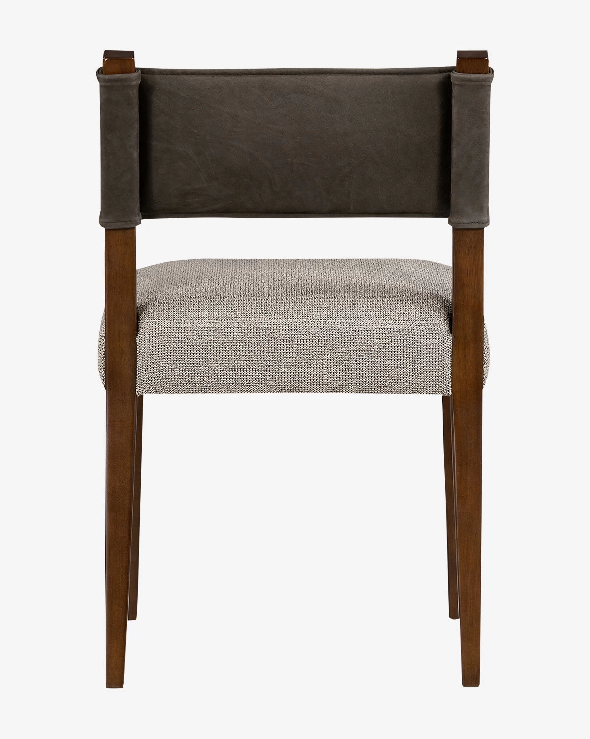 With a modern mix of materials, the Valeri Chair elevates your home with its simple, yet thoughtful form. From the tapered legs crafted from brown paparawood to the charcoal leather backing, this seat is the ultimate in functional design and comfort.