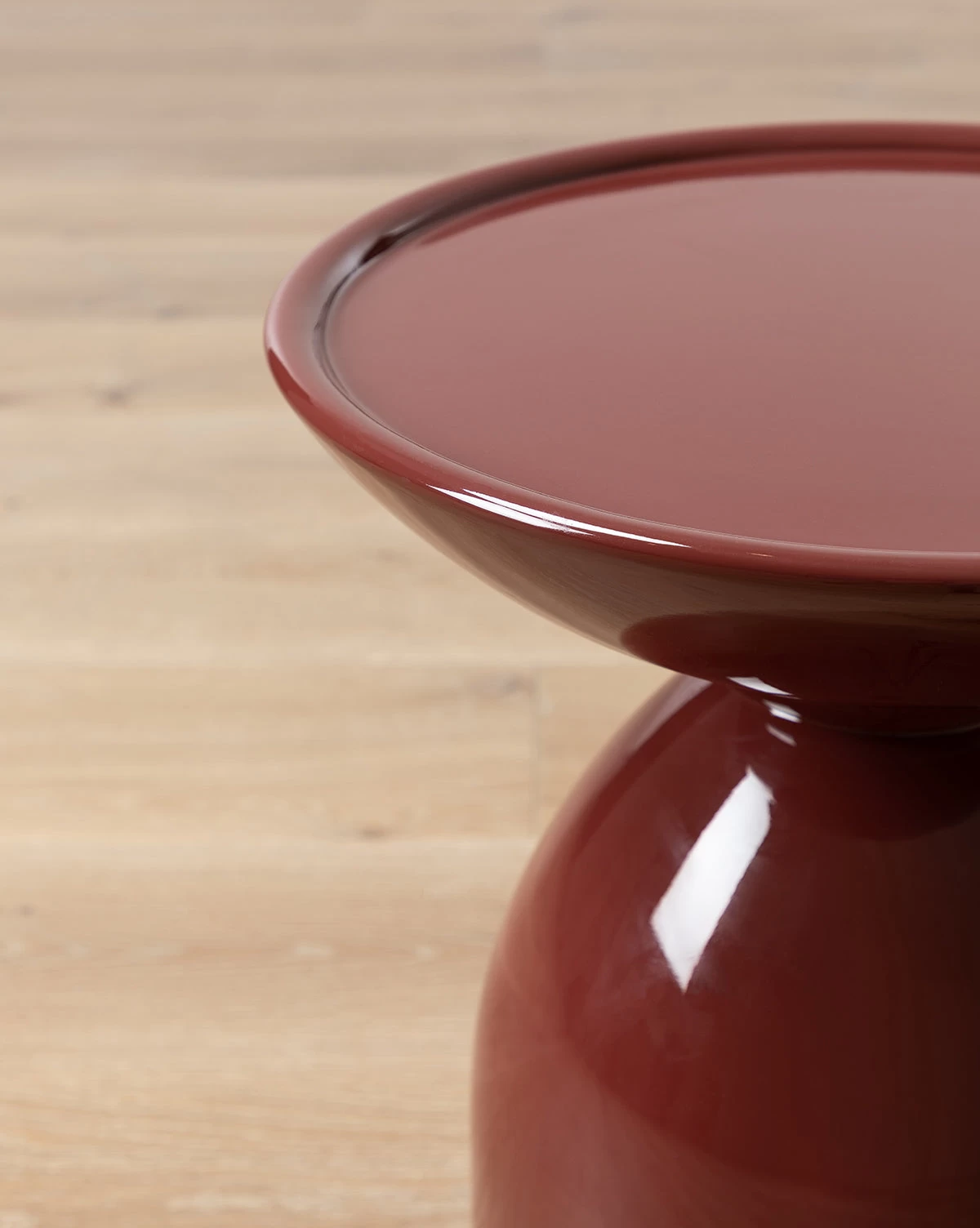 Make a statement with the stunning shape and tone of the Visby Side Table. Crafted from fiberstone and high glass enamel paint, the side table is bold and sculptural. Styled beside a sofa or lounge chair, the cherry mahogany hue of this piece elevates existing decor.