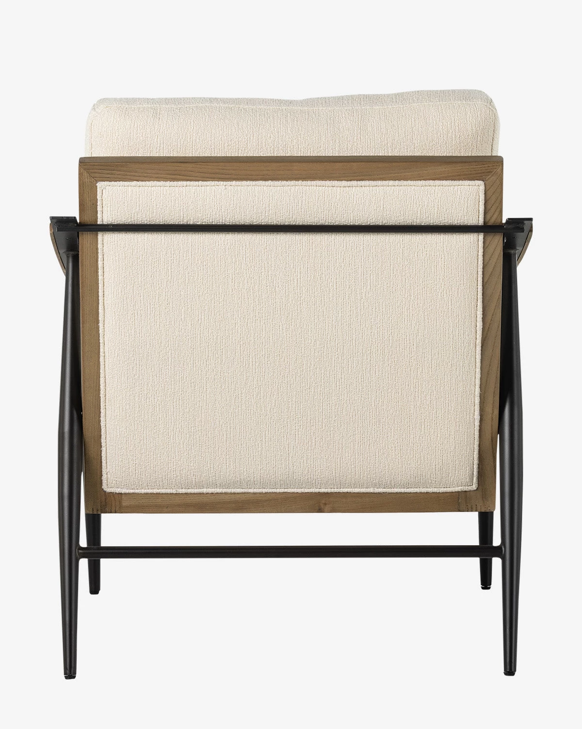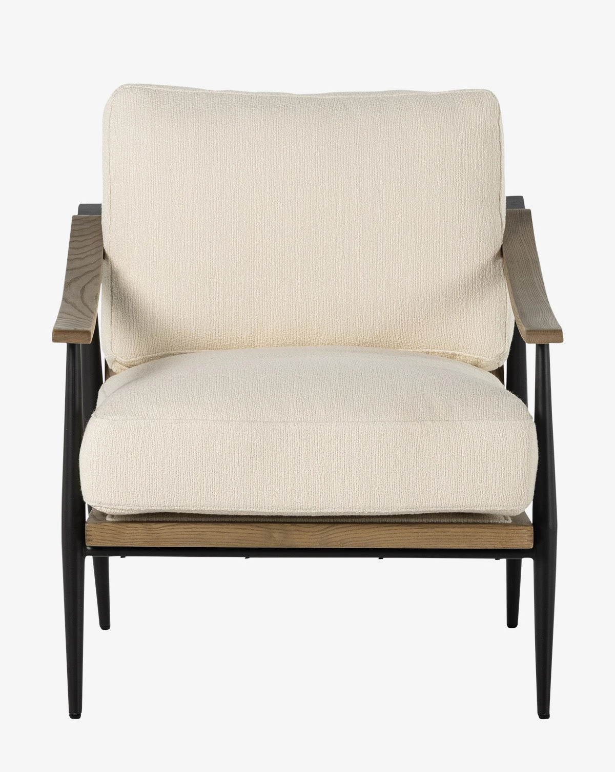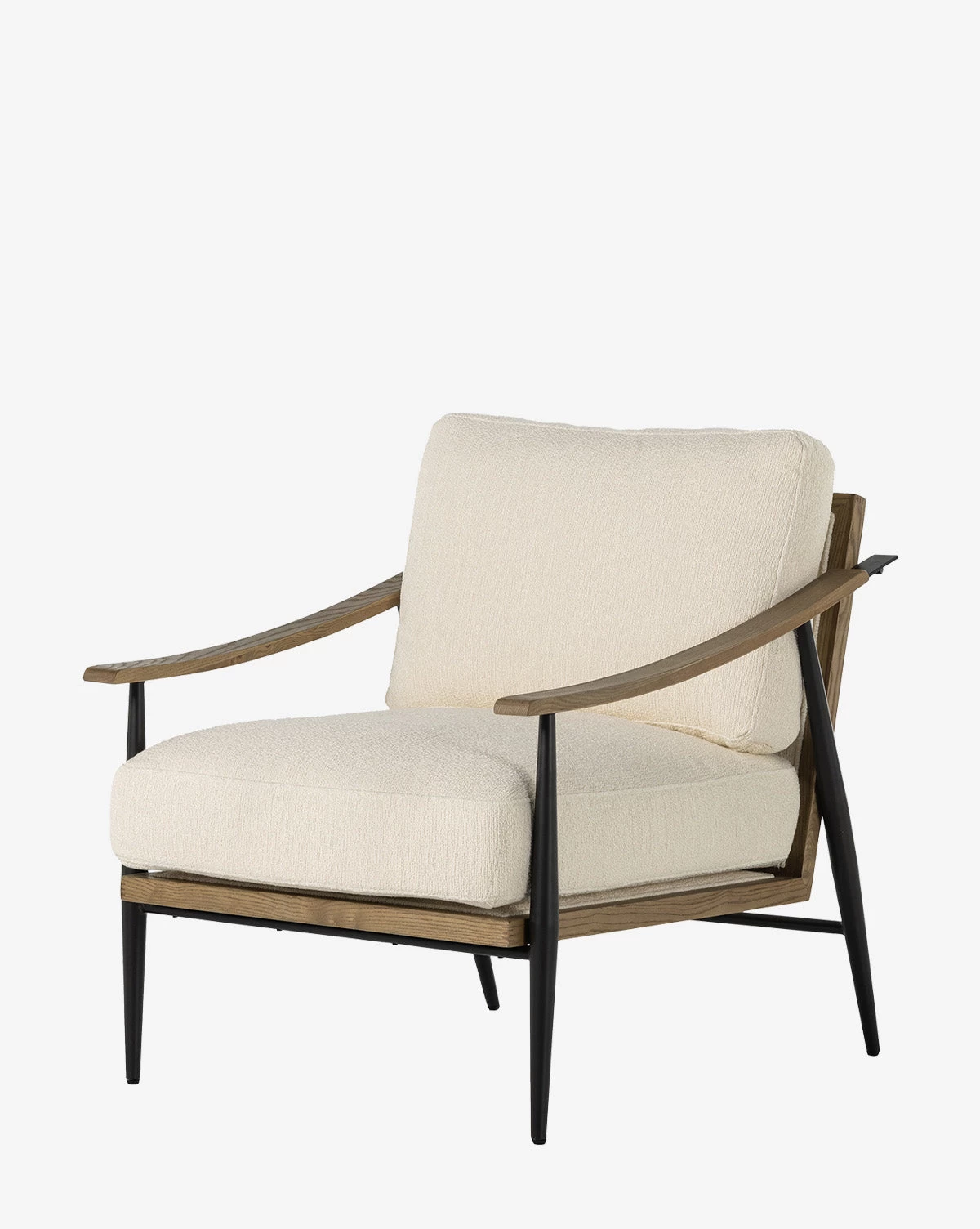 Crafted from a masterful mix of materials, the Wallace Chair is the epitome of comfort meets style. From the sloped wooden arms to the gunmetal finished legs.