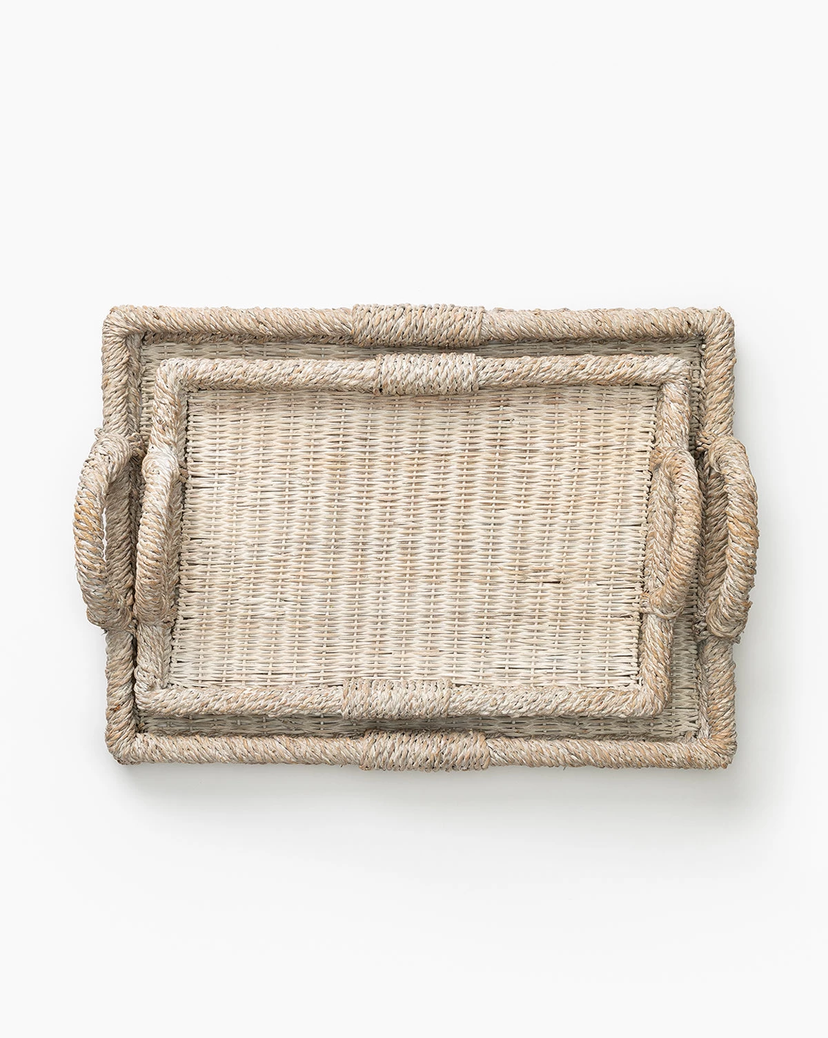 Made from tightly woven rattan, the Whitewashed Handled Tray boasts both form and function. Its white textural rattan sides and handles add welcome detail to a coffee table or console. Spacious and durable, the tray flawlessly displays decor from dried botanicals to books.