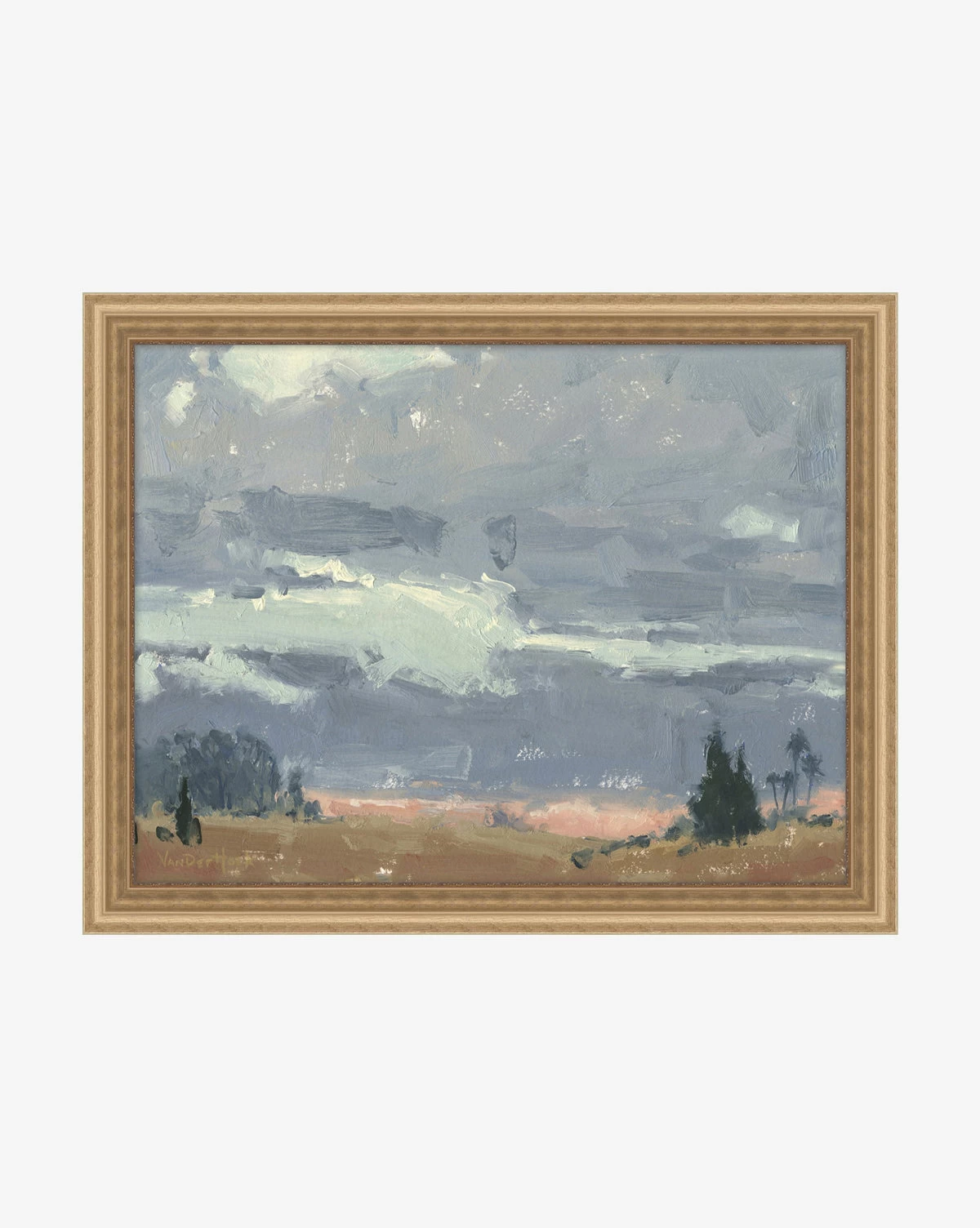 December sky portrays a serene winterâs day in true impressionistic style. With hues ranging from periwinkle to light blue, itâs reminiscent of the sky before it snows.
